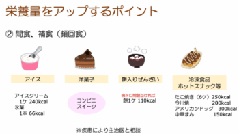 食事以外の間食で栄養補強については興味深くよかった