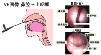 その際、精密検査が必要と判断されれば、嚥下内視鏡検査を実施します。嚥下内視鏡検査は、機器の取り扱いや手技に精通している必要があるため、専門医に検査を依頼することもあるかと思います。