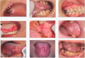 口内炎やアフタ、カンジダ症、潰瘍、紅板症、癌など、比較的軽微なものから重篤なものまでさまざまです。
