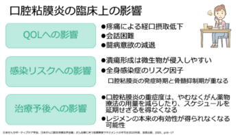 - 口腔粘膜炎の臨床上の影響